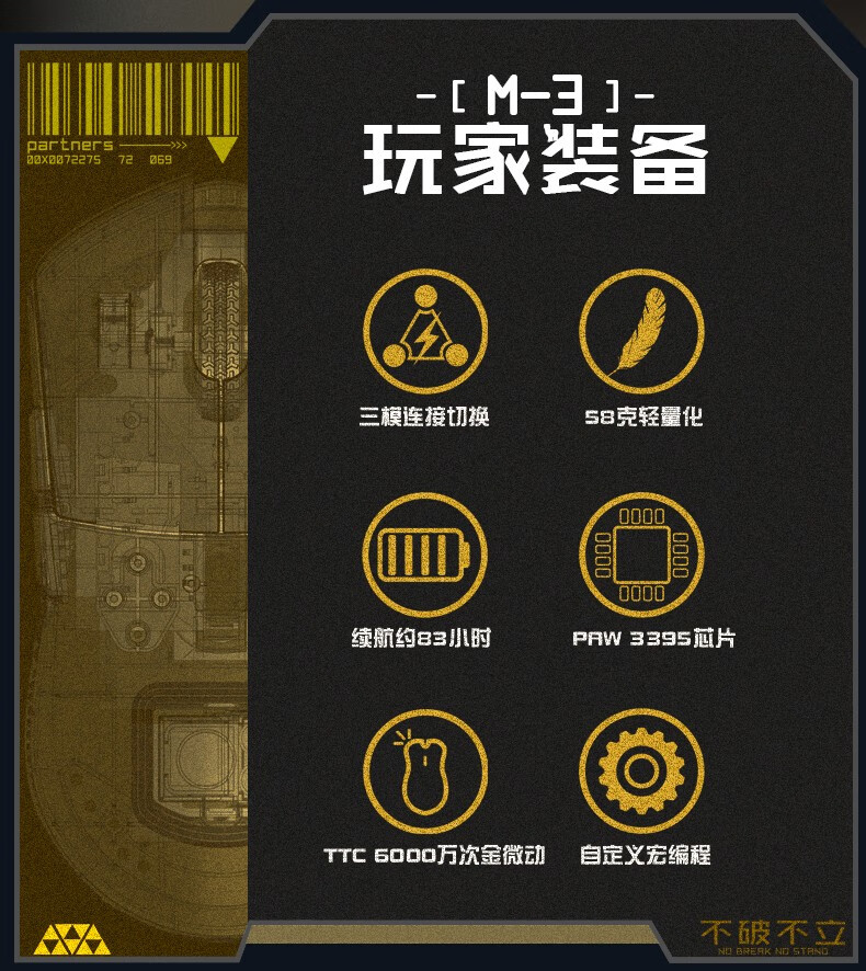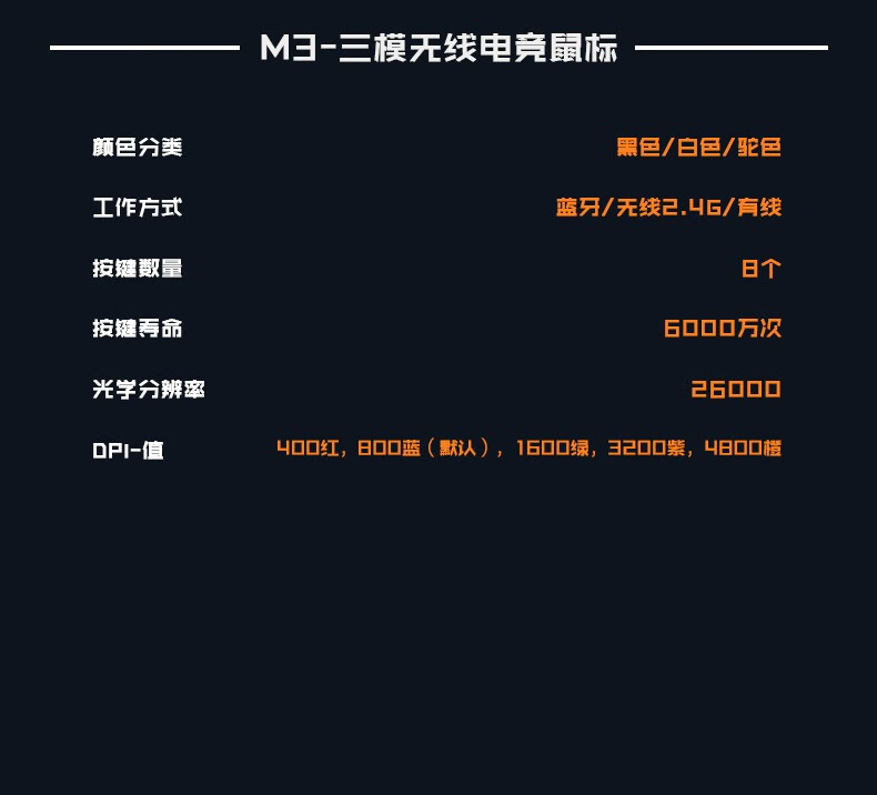 ¥249.00达摩鲨 M3 三模无线鼠标 蓝牙2.4G有线轻量化游戏电竞鼠标 PAW3395 中大手对称 鼠标 M3白色