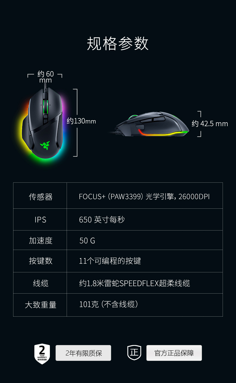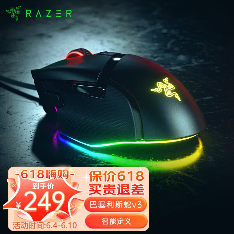 雷蛇(Razer) Basilisk巴塞利斯蛇V3 宏游戏电竞鼠标RGB幻彩灯区 【有线鼠标】巴塞利斯蛇V3(11个幻彩灯区) 自营