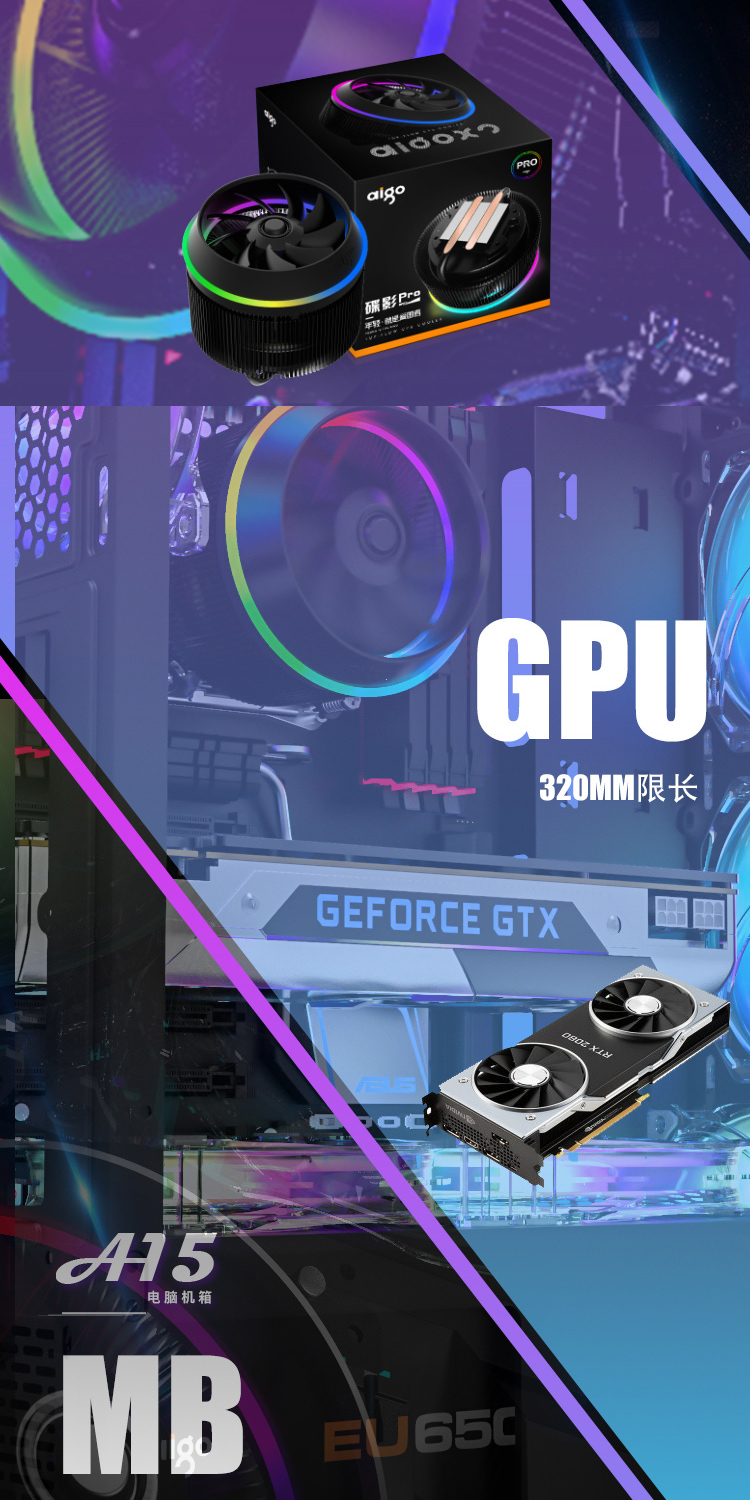 ¥399.00爱国者(aigo)A15全侧透 黑色分体式游戏办公电脑机箱/支持ATX主板/亚克力全侧透/240冷排/可走背线