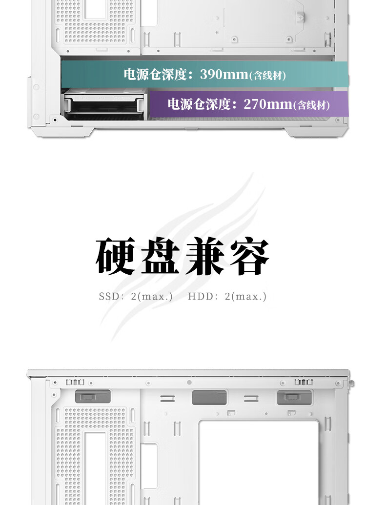 ¥629.00爱国者(aigo)星璨 岚 白色 游戏电脑台式主机箱 支持360水冷 水族馆/M-ATX主板//四面快拆/270°海景房