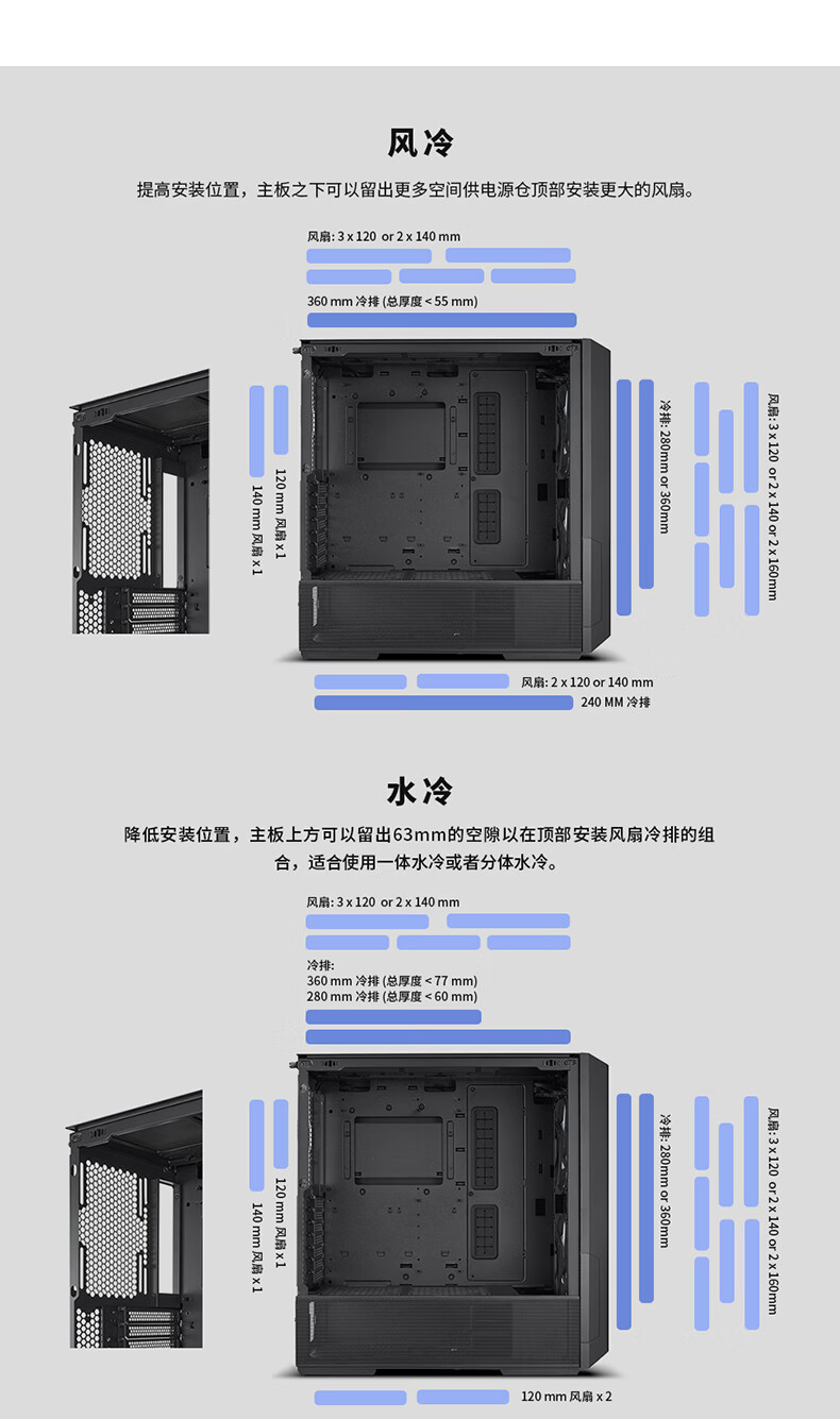 ¥399.00爱国者(aigo)A15全侧透 黑色分体式游戏办公电脑机箱/支持ATX主板/亚克力全侧透/240冷排/可走背线