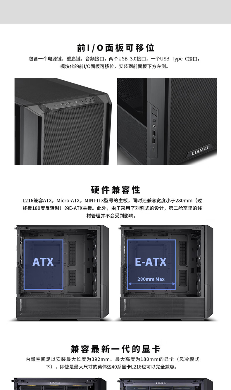 ¥949.00联力L216白色机箱台式机电脑全侧透ATX开放式海景房主机箱带风扇防尘网套装 联力L216白+白色防尘网(前面板)