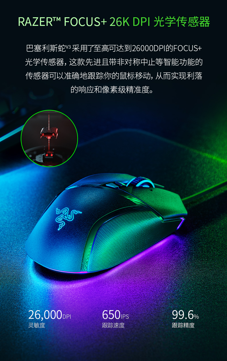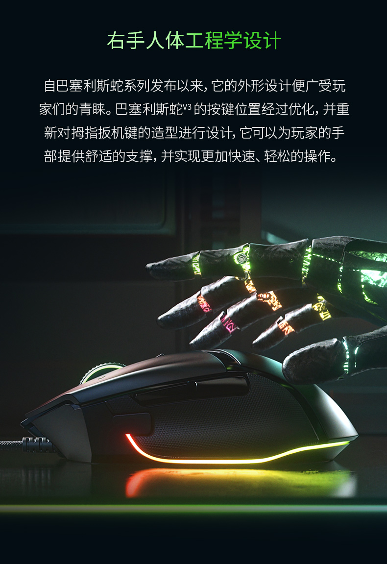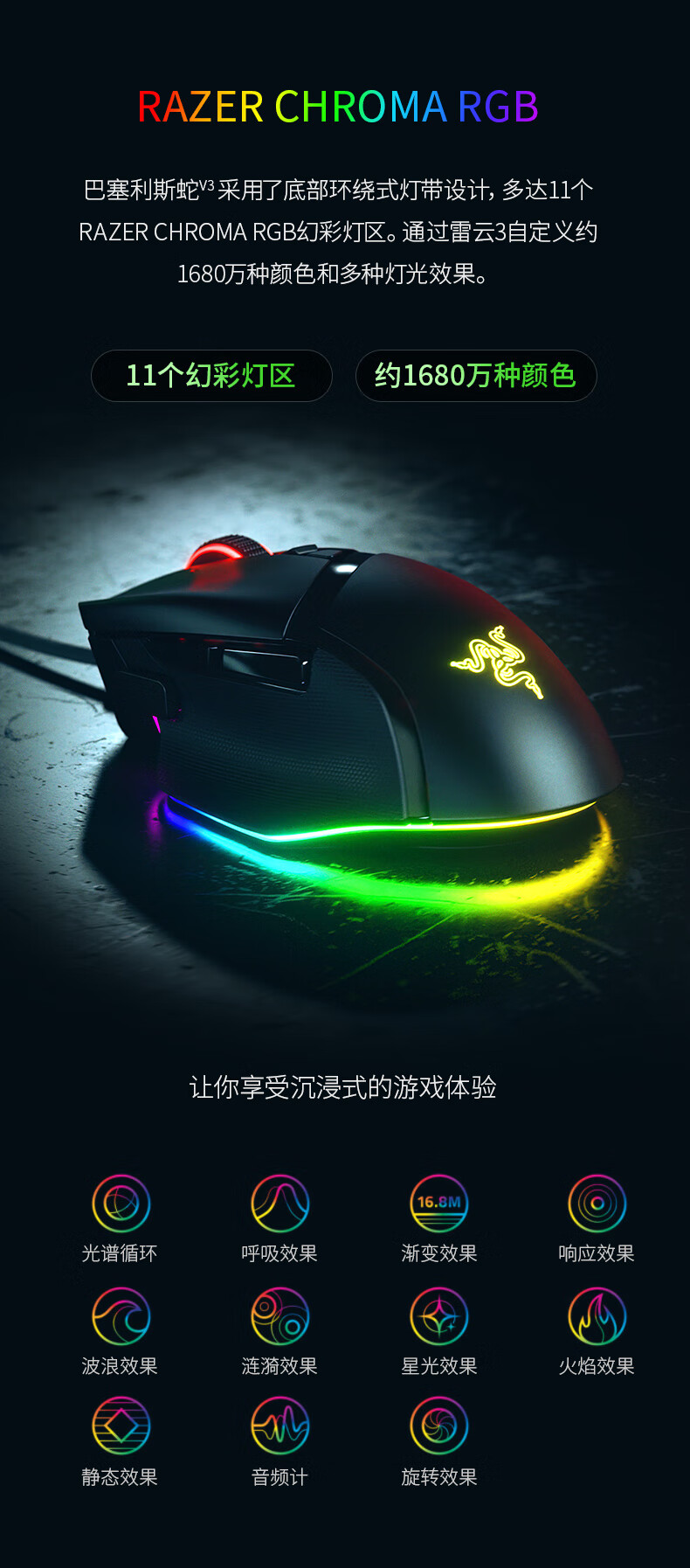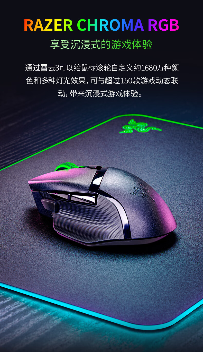 ¥99.00雷蛇(Razer) Basilisk巴塞利斯蛇V3 宏游戏电竞鼠标RGB幻彩灯区 【有线鼠标】巴塞利斯蛇V3(11个幻彩灯区)