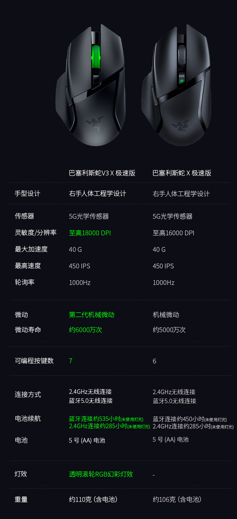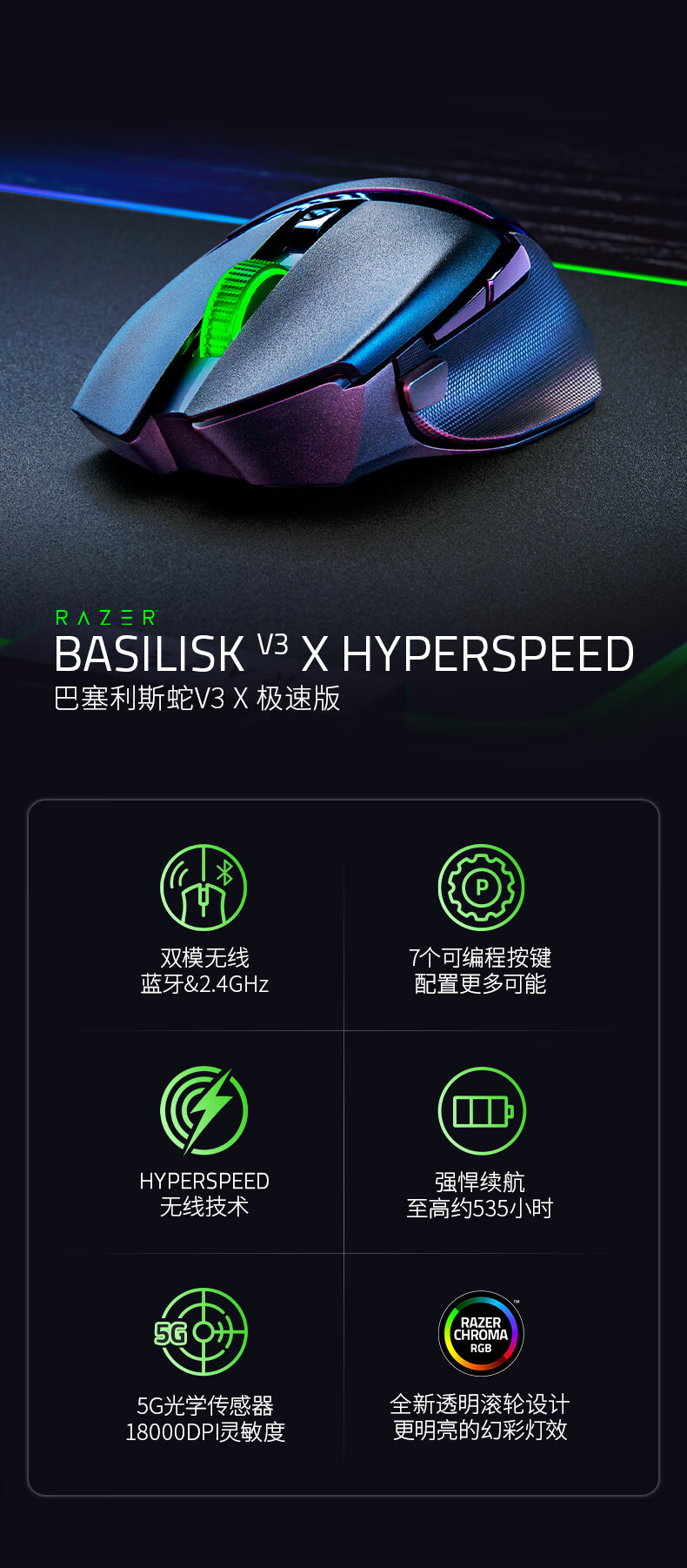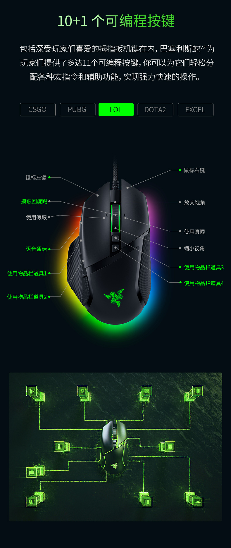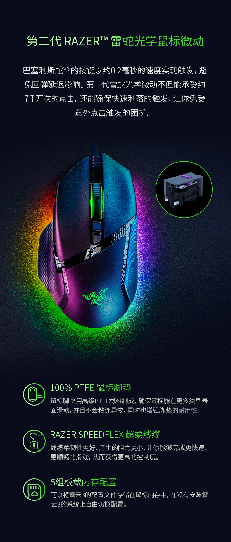 ¥99.00雷蛇(Razer) Basilisk巴塞利斯蛇V3 宏游戏电竞鼠标RGB幻彩灯区 【有线鼠标】巴塞利斯蛇V3(11个幻彩灯区)
