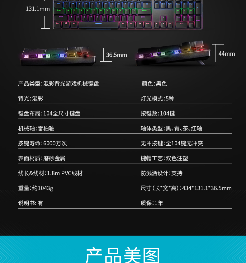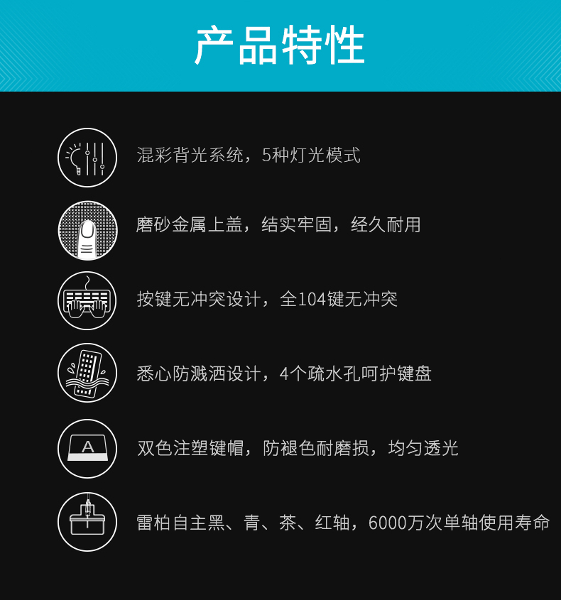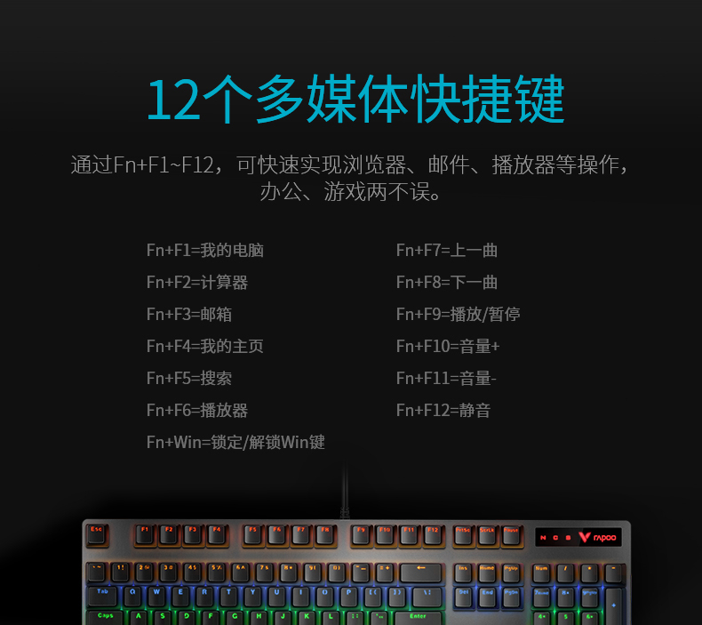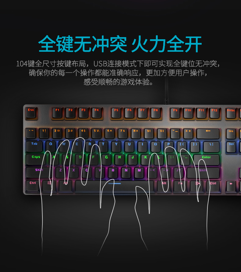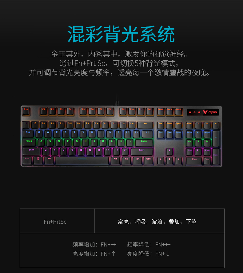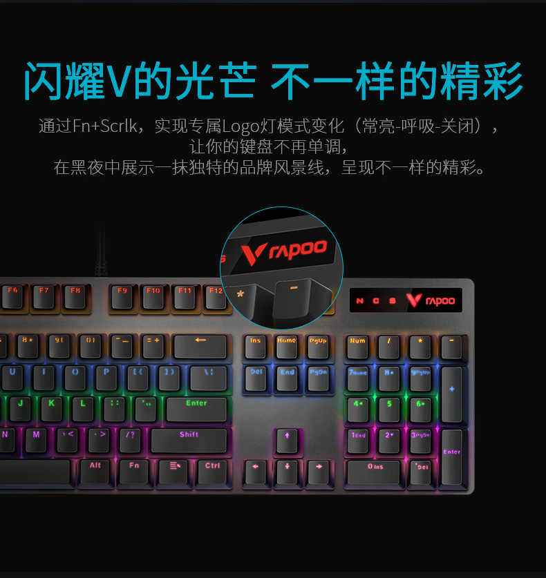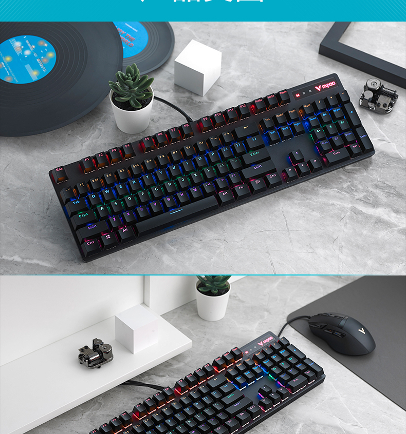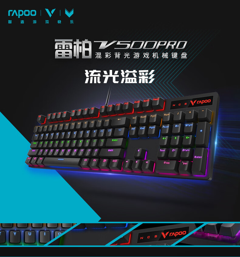 雷柏(Rapoo) V500PRO 有线背光机械键盘 104键全尺寸游戏电竞笔记本电脑多媒体办公吃鸡全键无冲键盘 青轴 自营