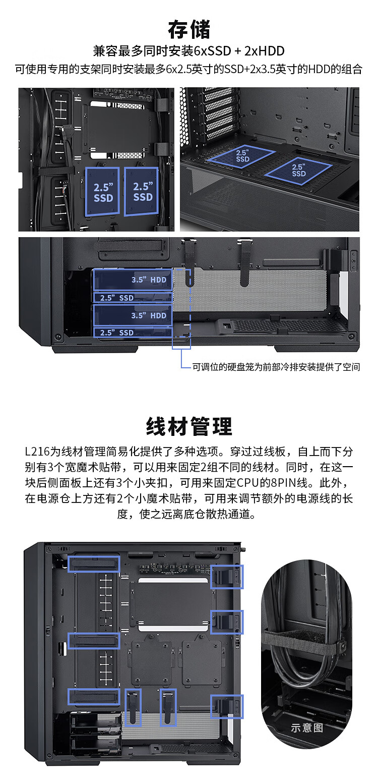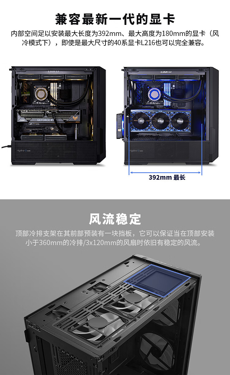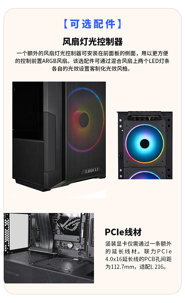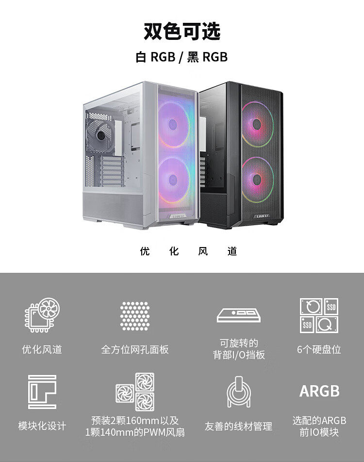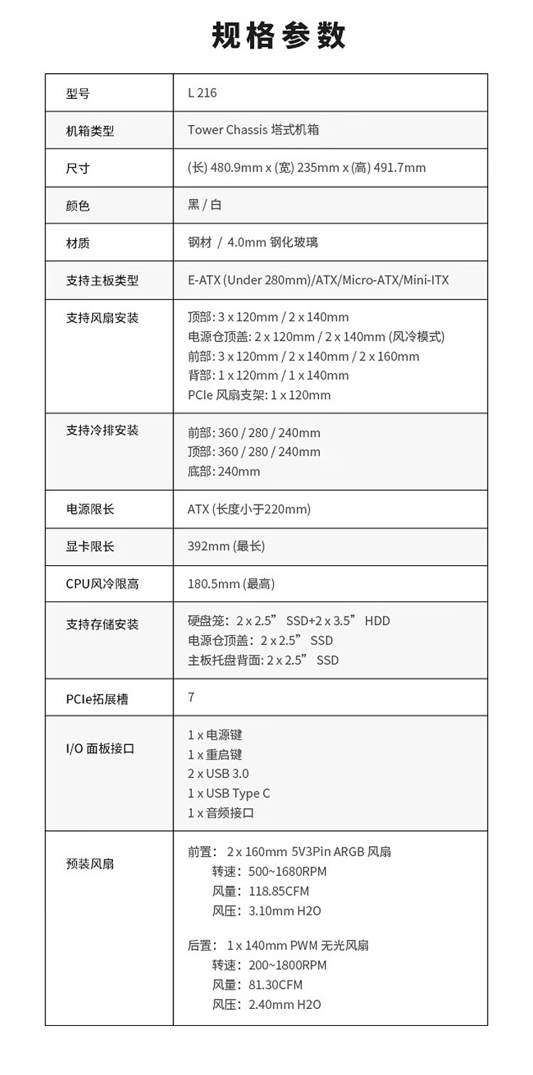 LIANLI 联力 L216 黑色 中塔式台式电竞游戏机箱 标配3把风扇/支持E-ATX主板竖装显卡360水冷/一体式网孔面板 自营