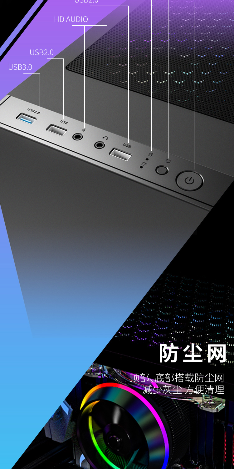 ¥629.00爱国者(aigo)星璨 岚 白色 游戏电脑台式主机箱 支持360水冷 水族馆/M-ATX主板//四面快拆/270°海景房