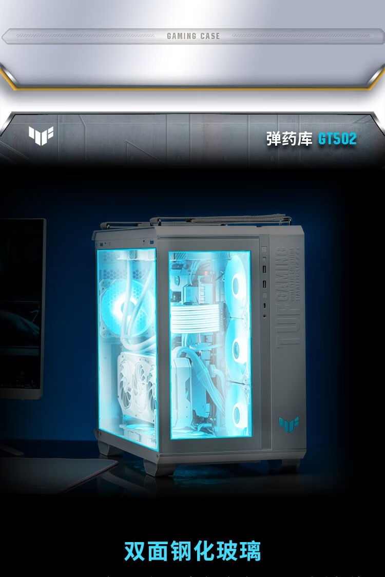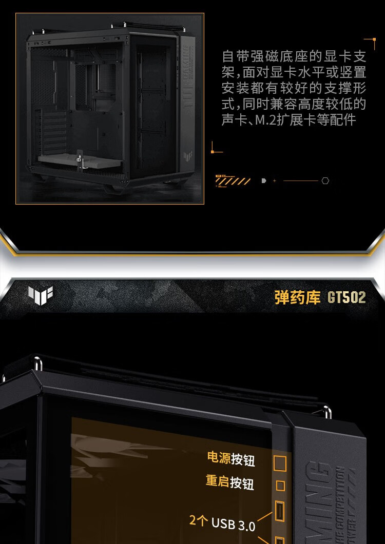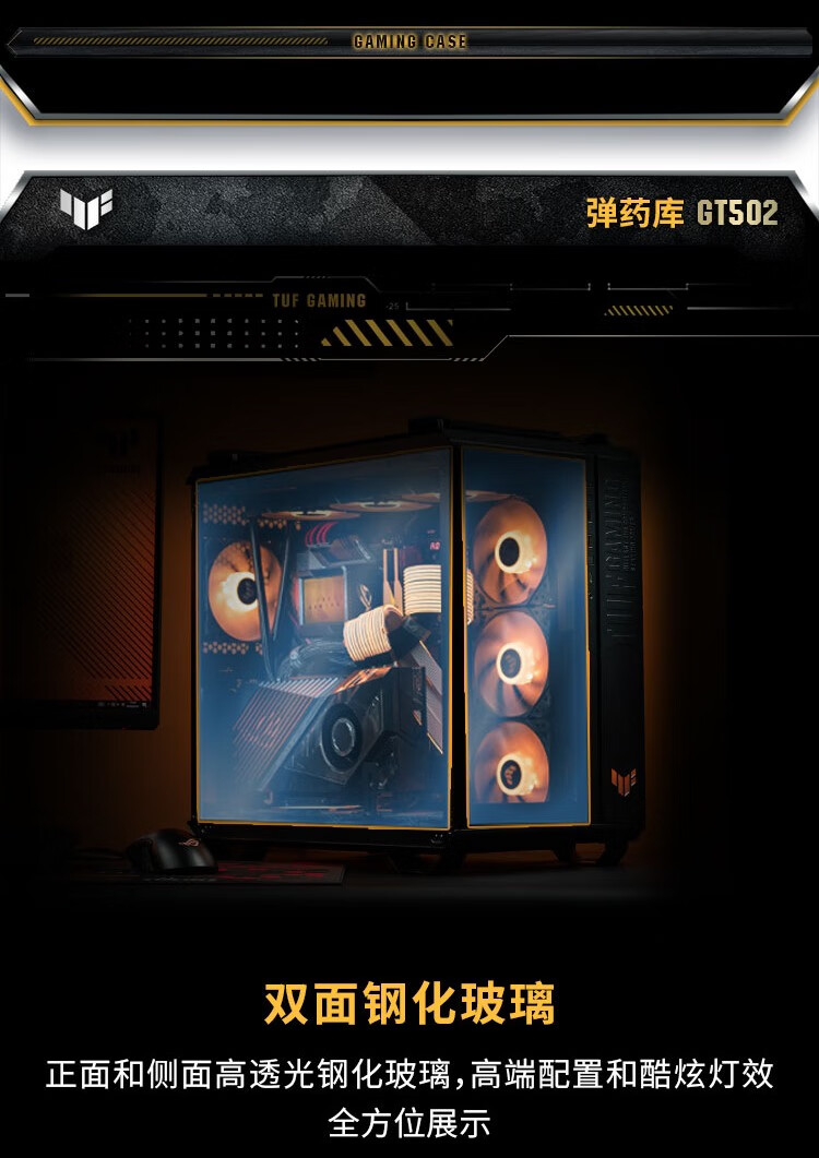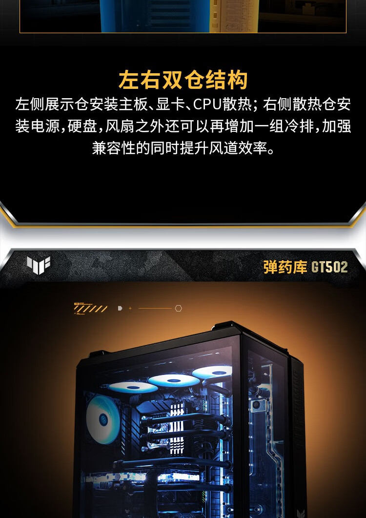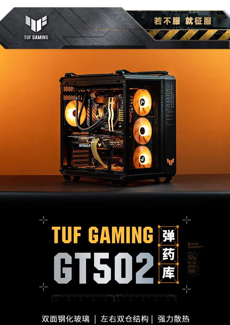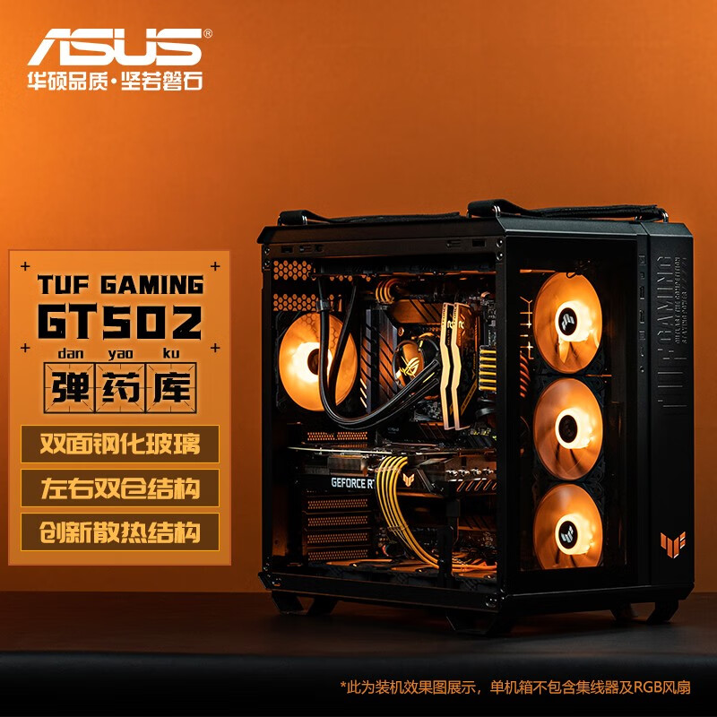 华硕(ASUS) TUF GAMING GT502 弹药库机箱 双仓设计/免工具拆卸/双面侧透 GT502 黑色 自营