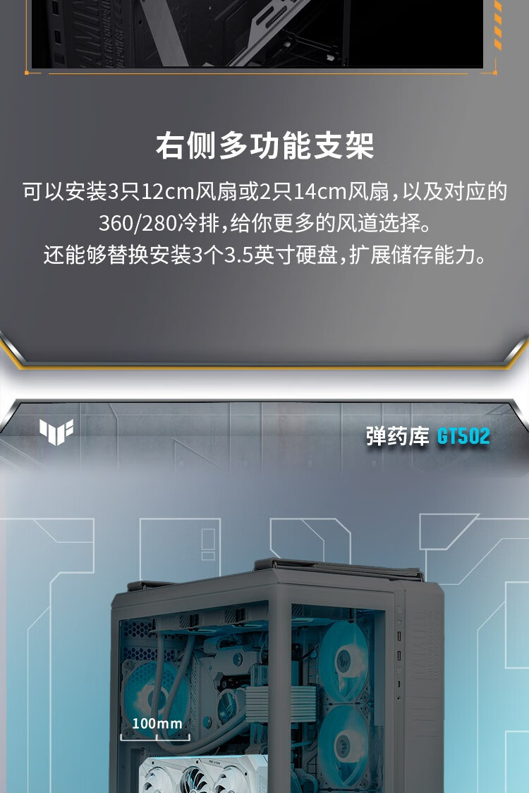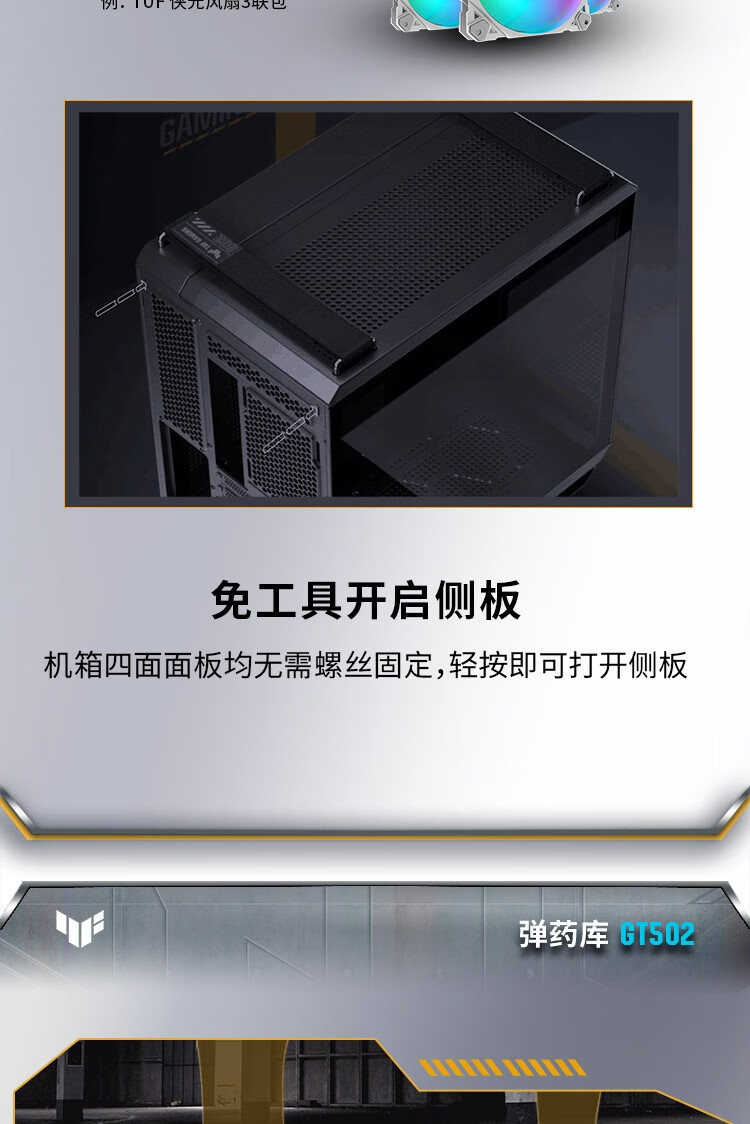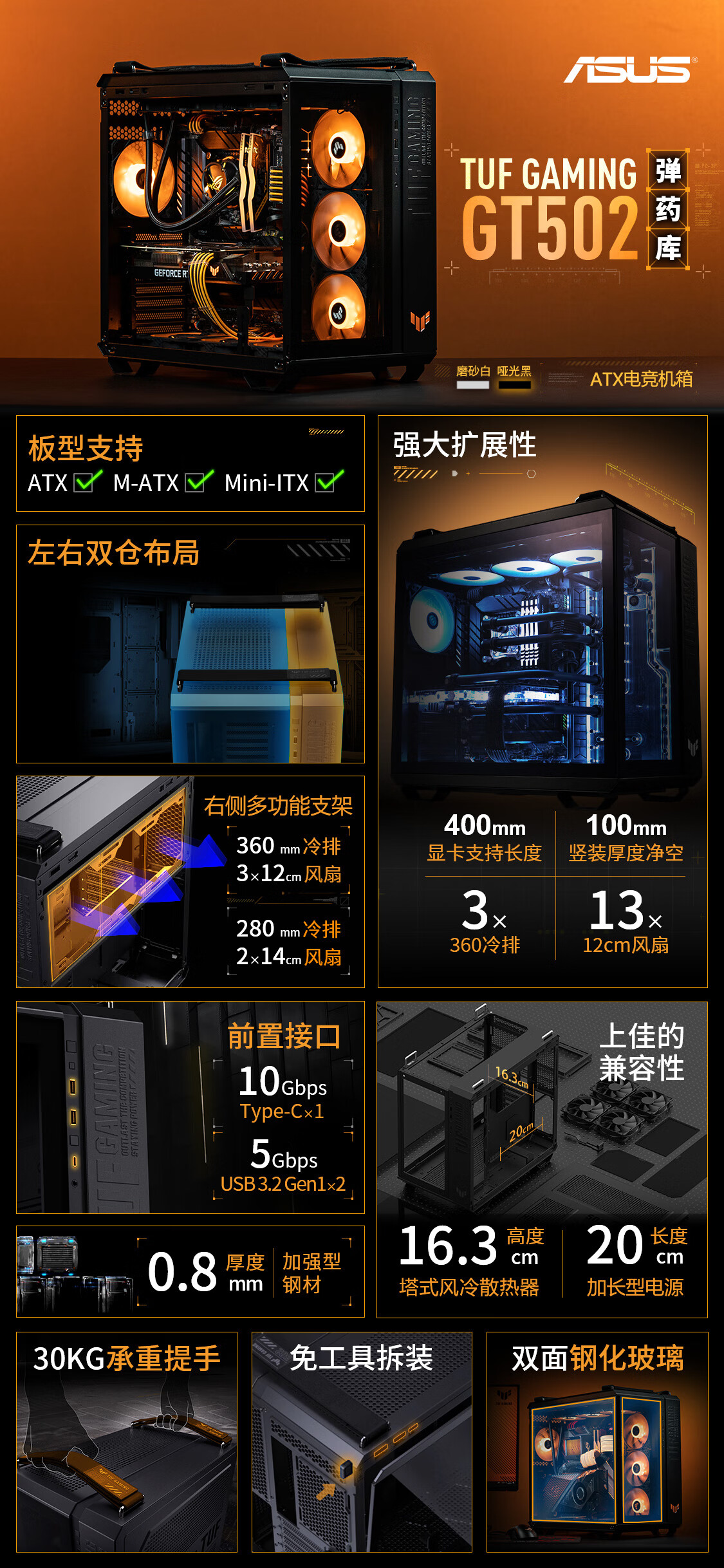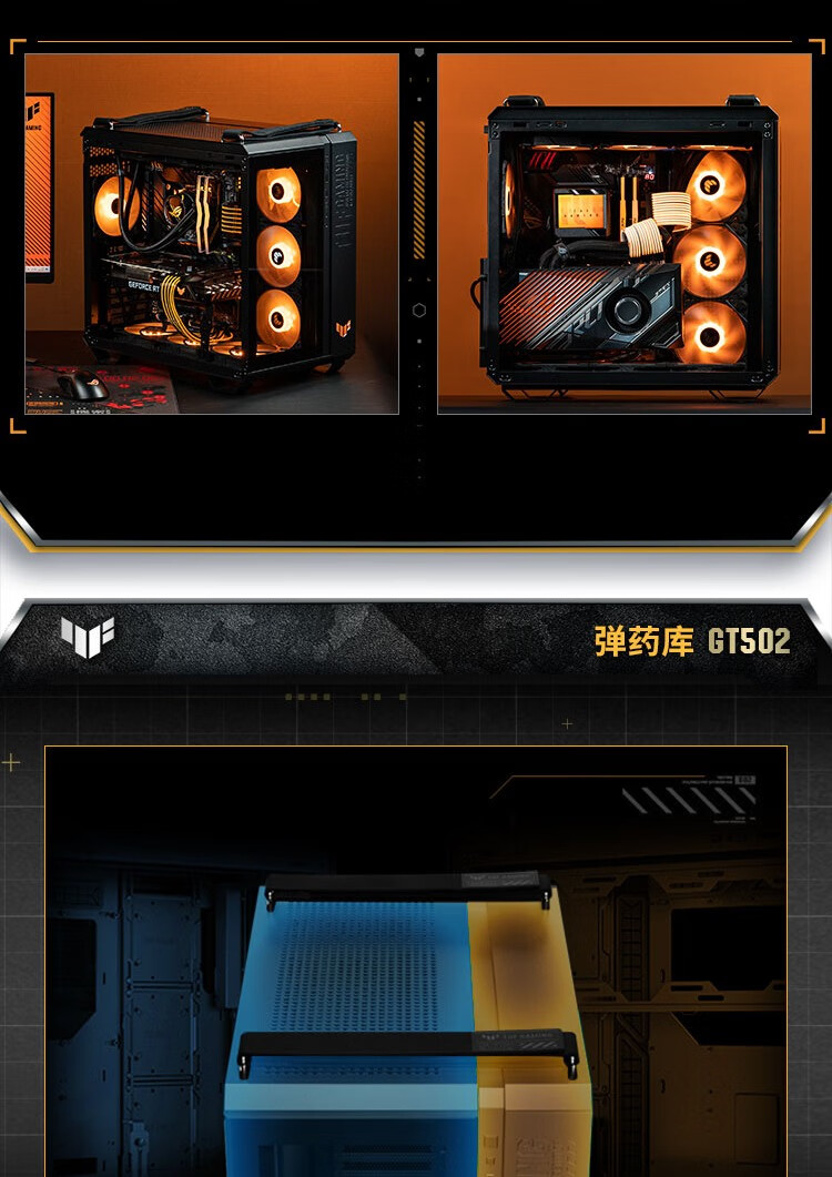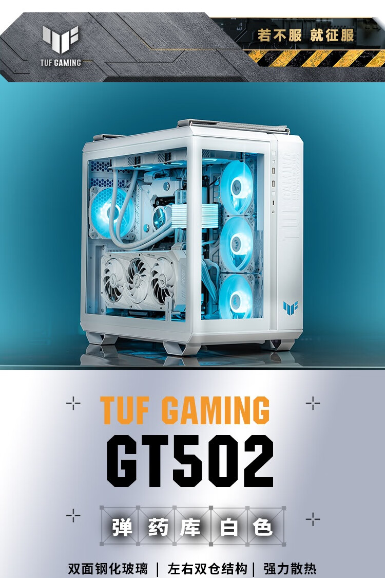 华硕(ASUS) TUF GAMING GT502 弹药库机箱 双仓设计/免工具拆卸/双面侧透 GT502 黑色 自营