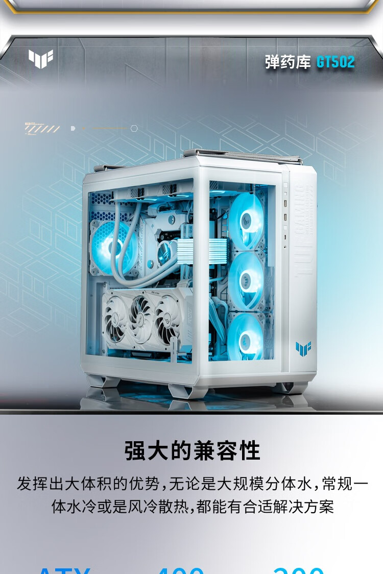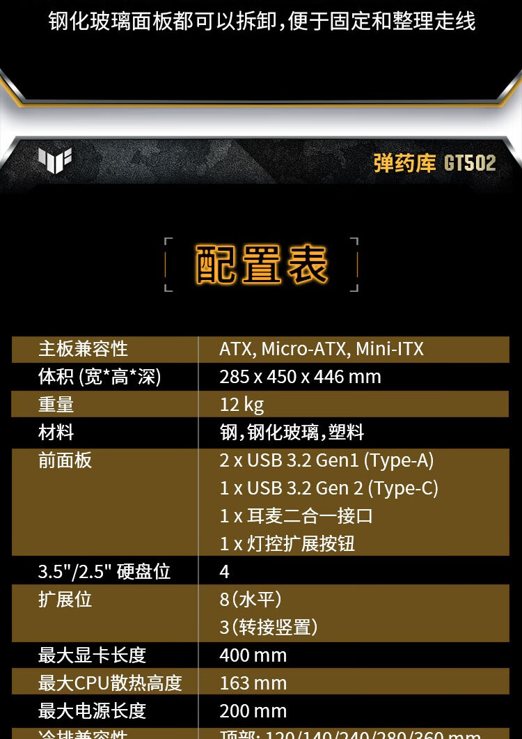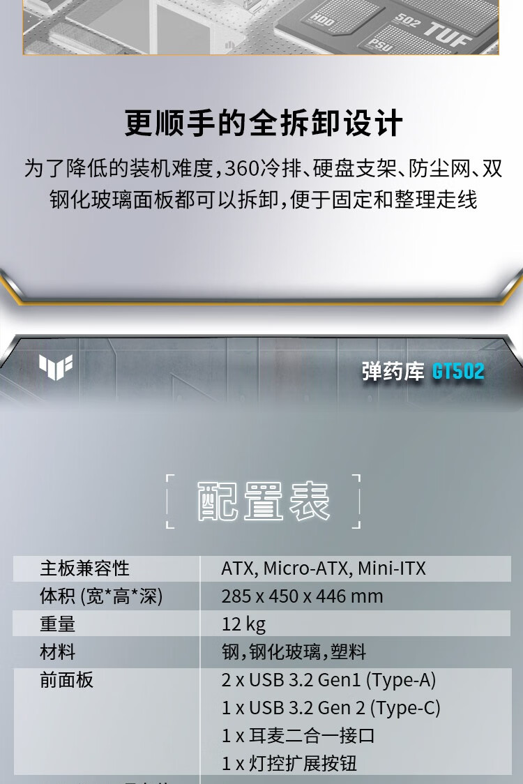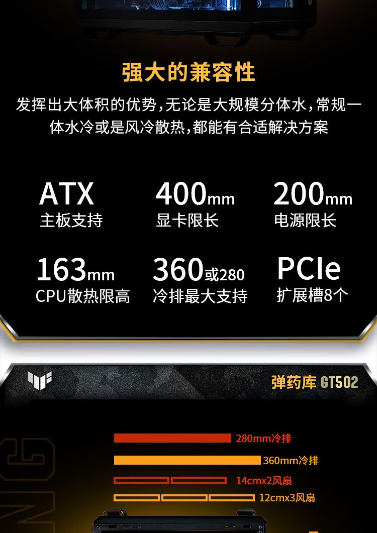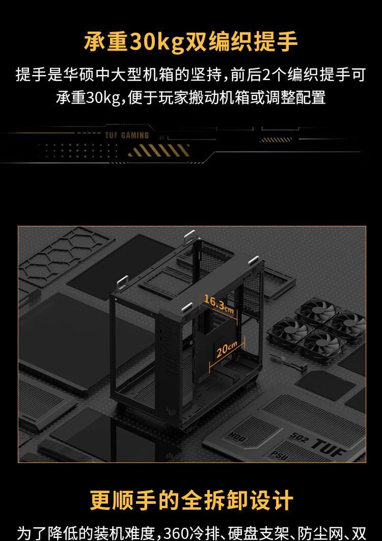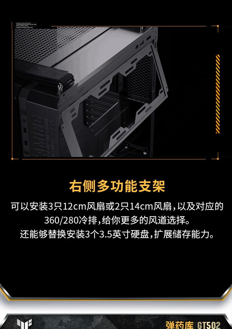 华硕(ASUS) TUF GAMING GT502 弹药库机箱 双仓设计/免工具拆卸/双面侧透 GT502 黑色 自营