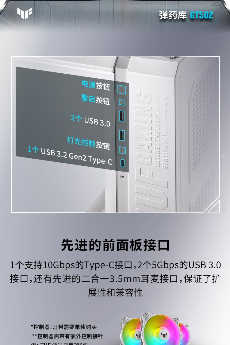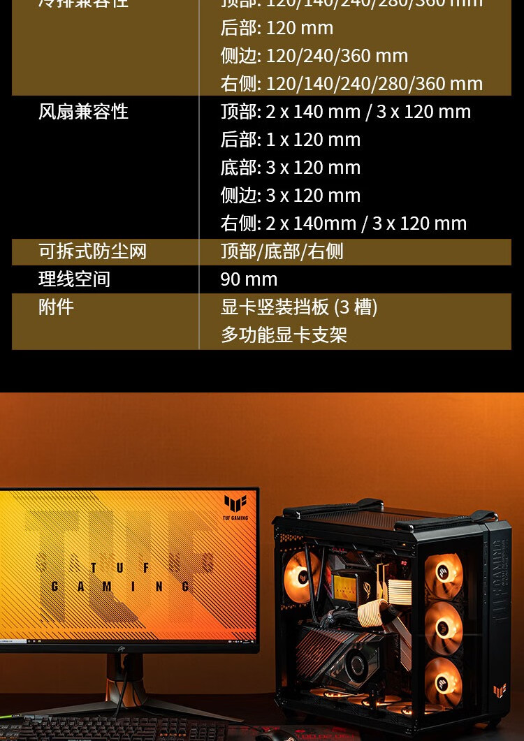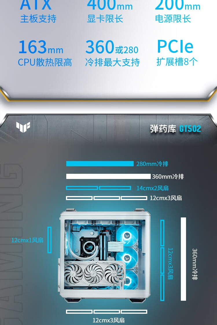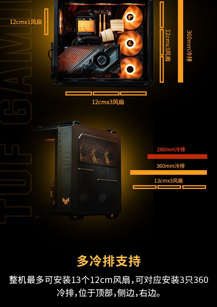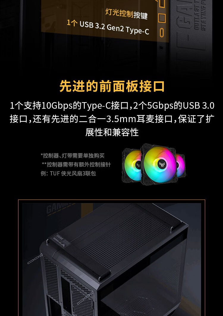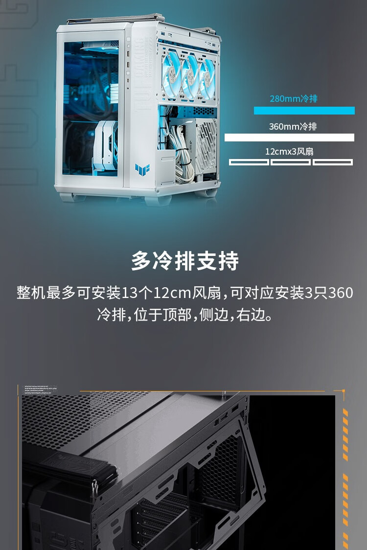 华硕(ASUS) TUF GAMING GT502 弹药库机箱 双仓设计/免工具拆卸/双面侧透 GT502 黑色 自营