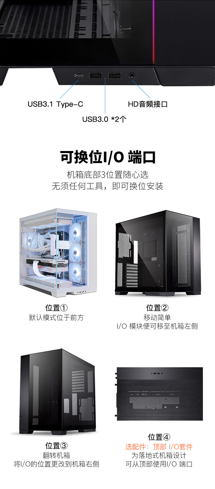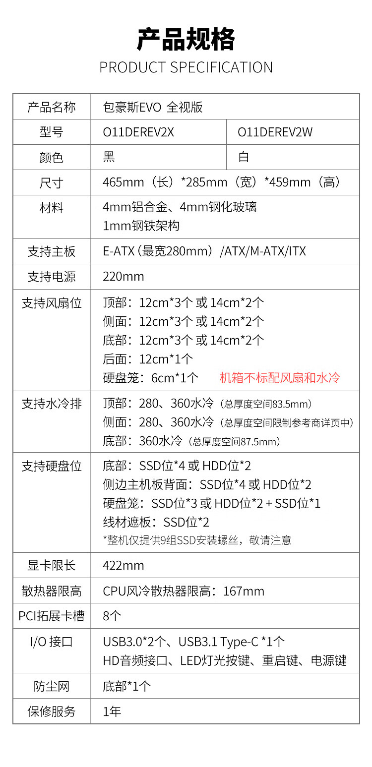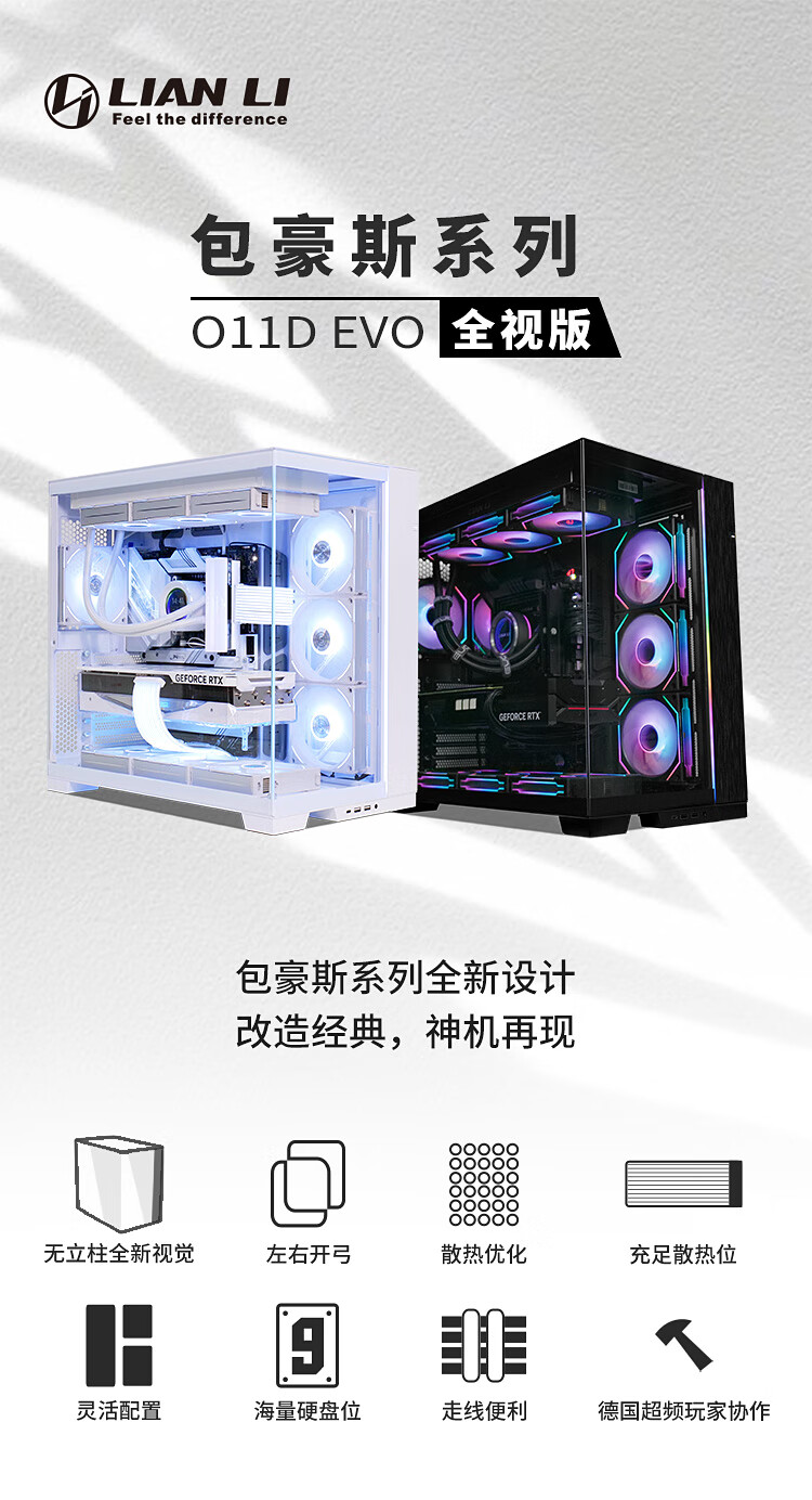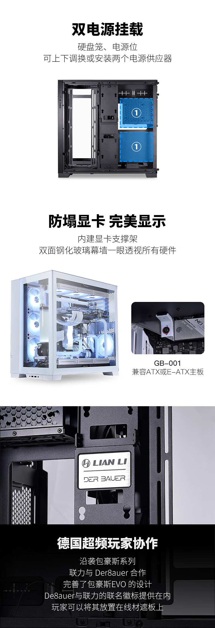 LIANLI 联力 包豪斯O11D EVO全视版白色 海景房电脑机箱台式机 双面玻璃/E-ATX大箱/三面水冷位/支持4090显卡