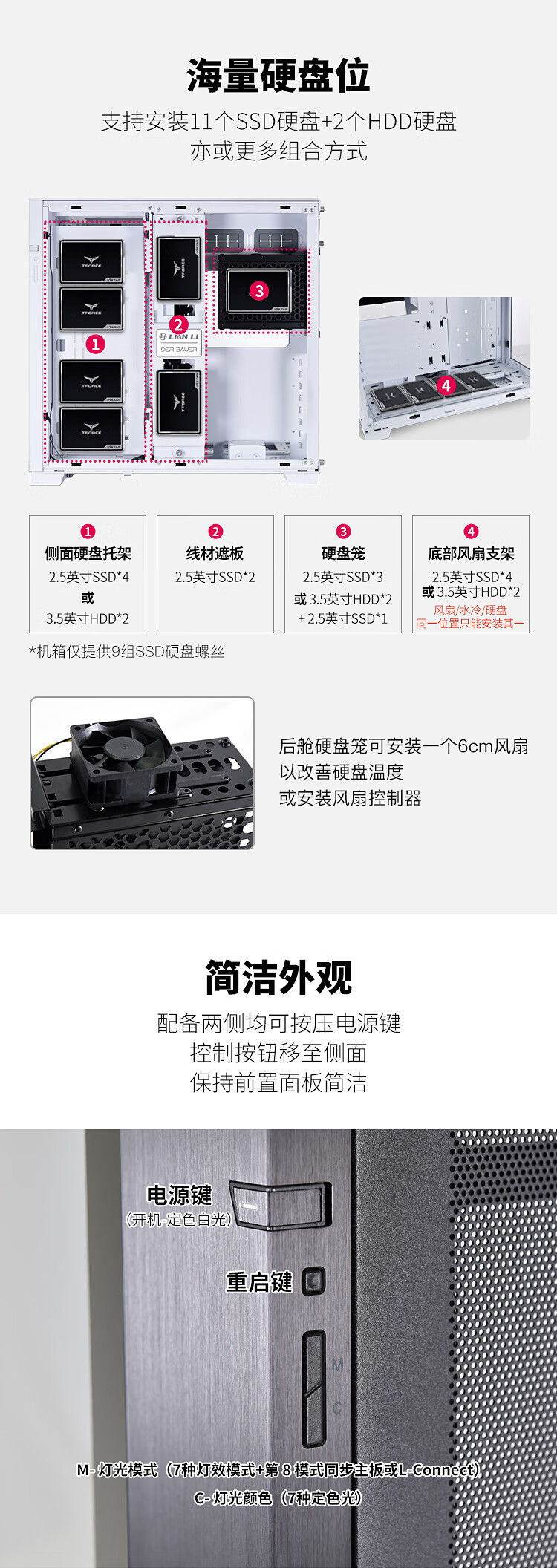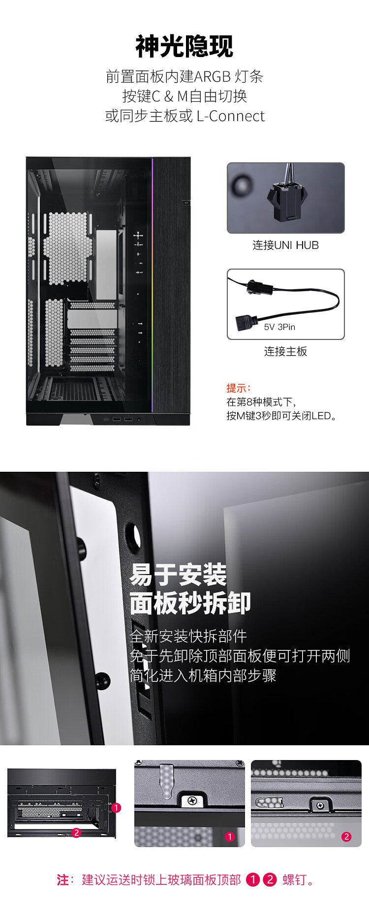 ¥949.00联力L216白色机箱台式机电脑全侧透ATX开放式海景房主机箱带风扇防尘网套装 联力L216白+白色防尘网(前面板)