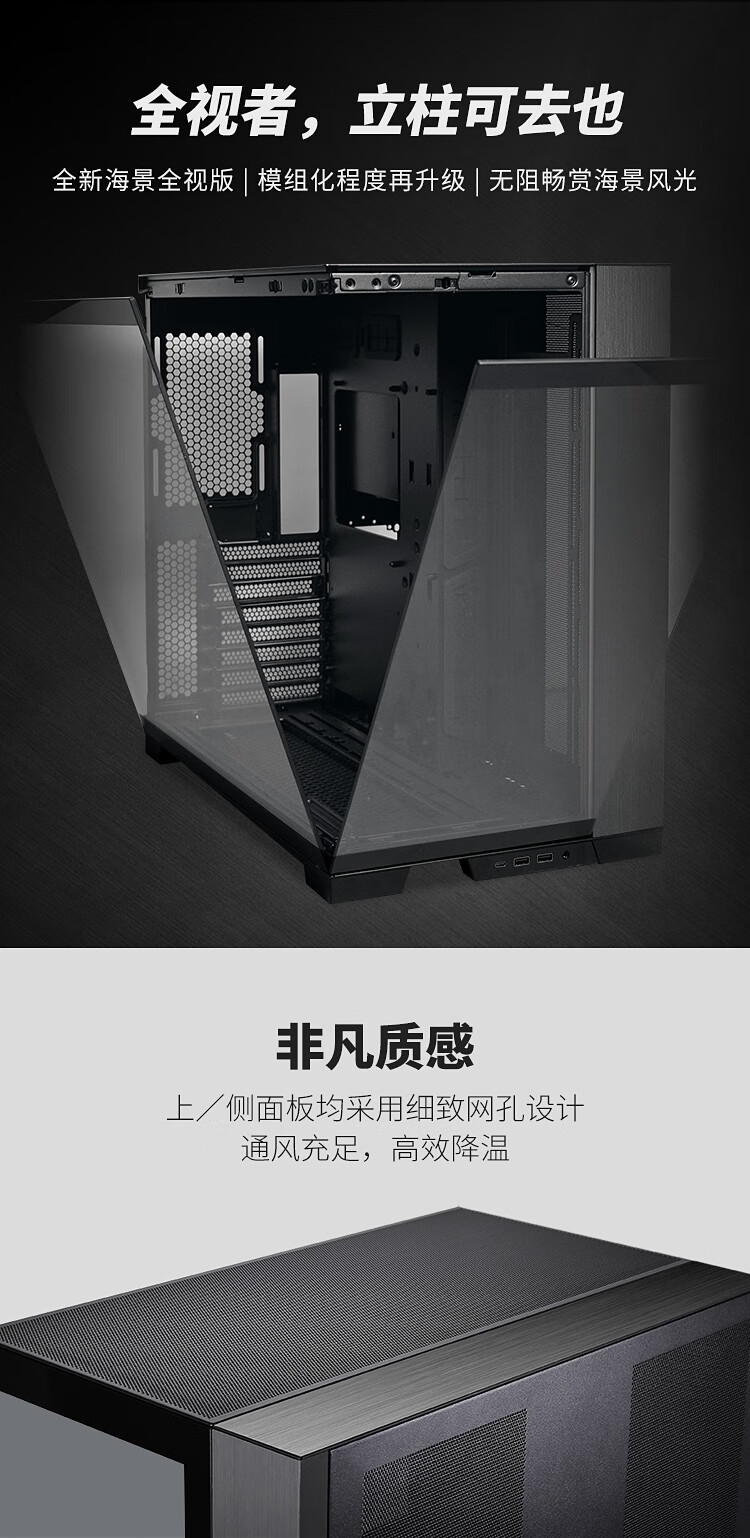 ¥399.00爱国者(aigo)A15全侧透 黑色分体式游戏办公电脑机箱/支持ATX主板/亚克力全侧透/240冷排/可走背线