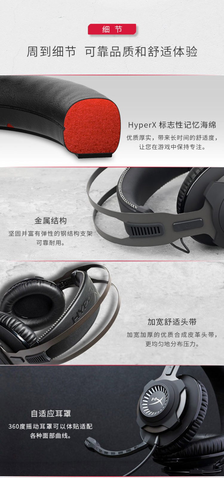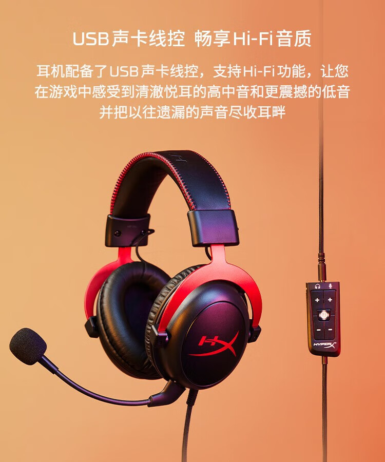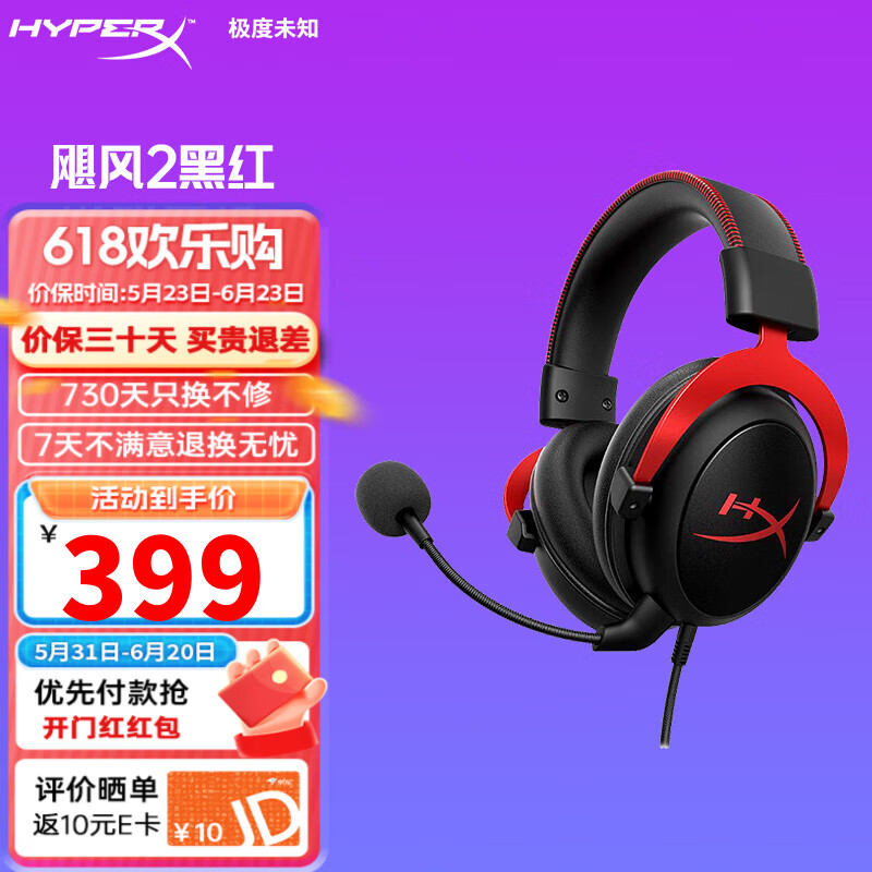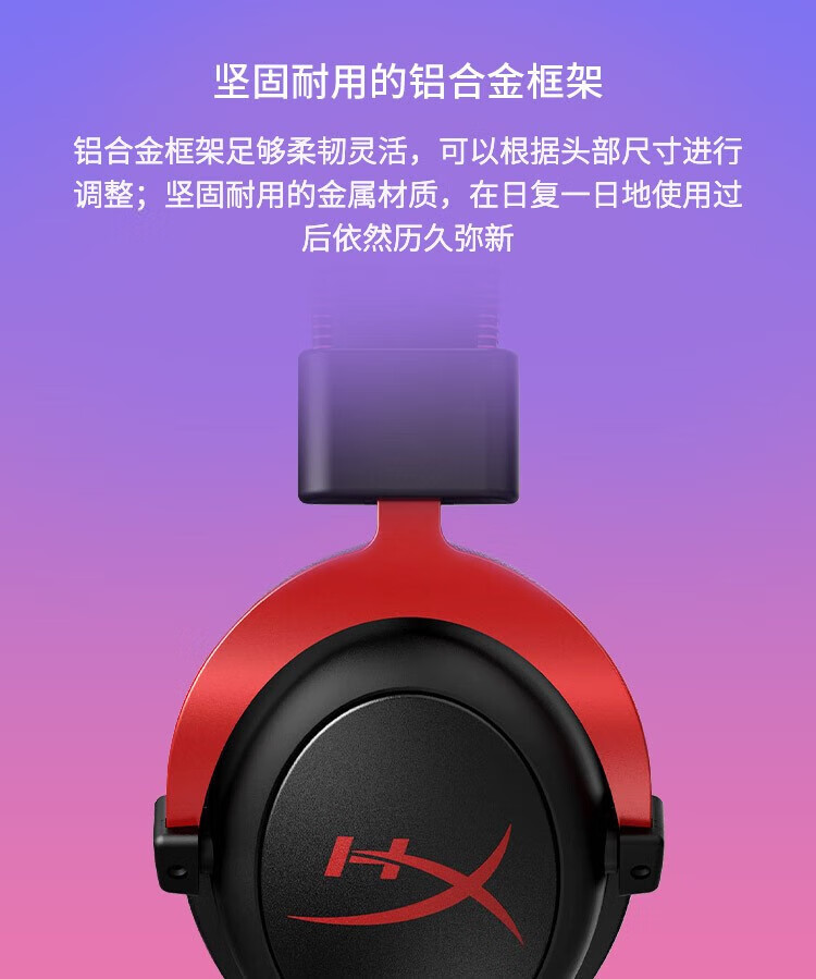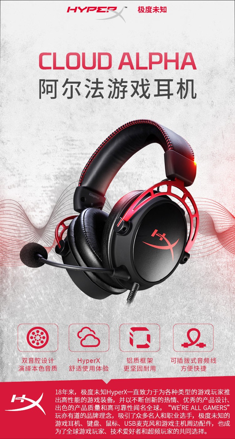 极度未知(HYPERX) 飓风2cloud头戴式游戏耳机阿尔法旋风黑鹰毒刺绝地求生原金士顿电竞耳机 飓风2 黑红 官方标配 自营