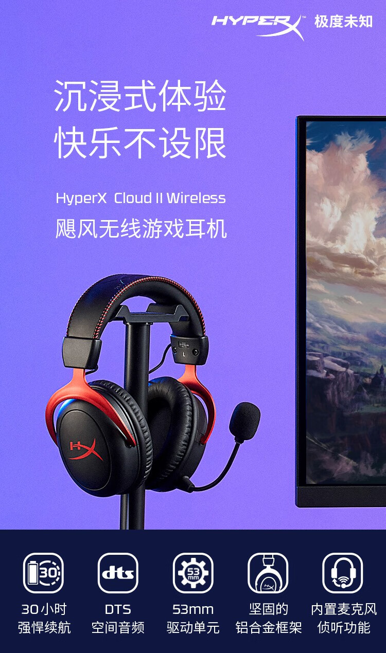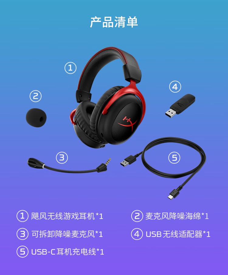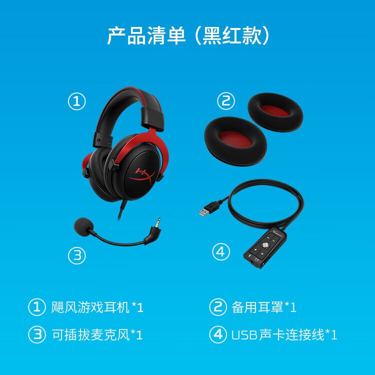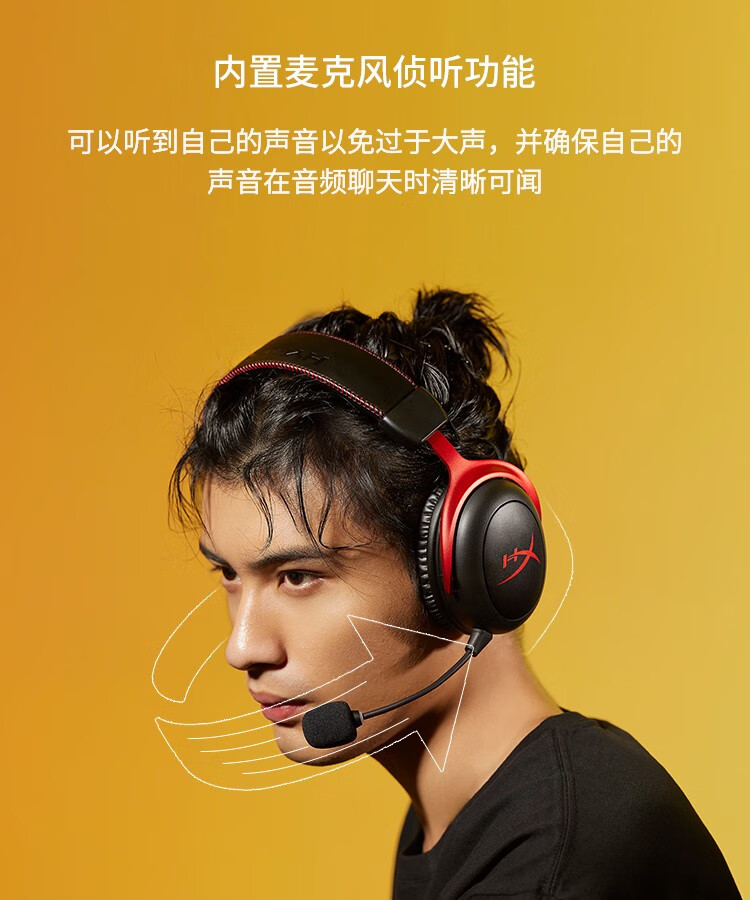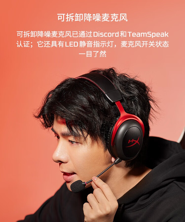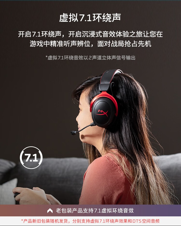极度未知(HYPERX) 飓风2cloud头戴式游戏耳机阿尔法旋风黑鹰毒刺绝地求生原金士顿电竞耳机 飓风2 黑红 官方标配 自营