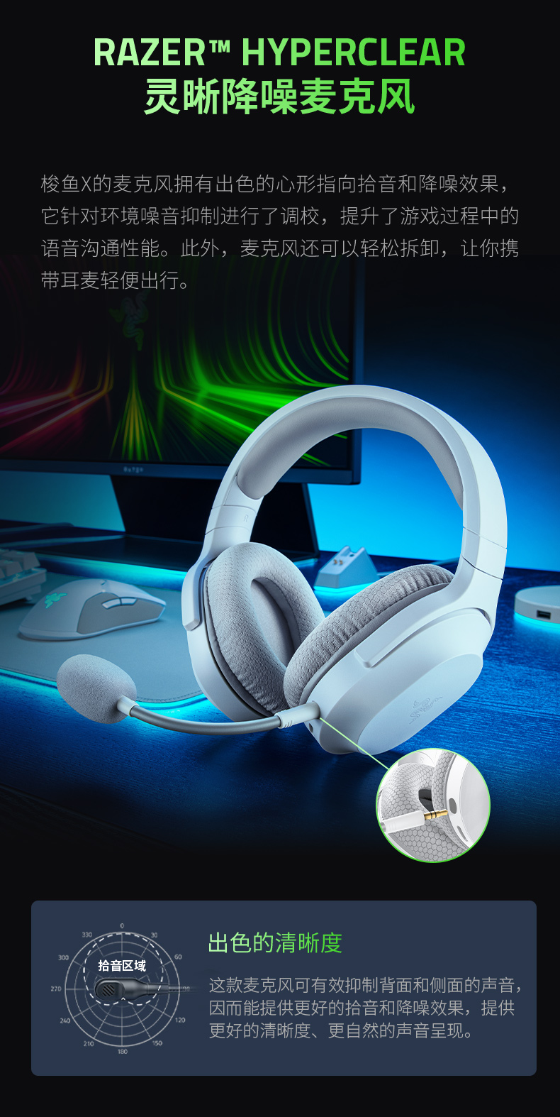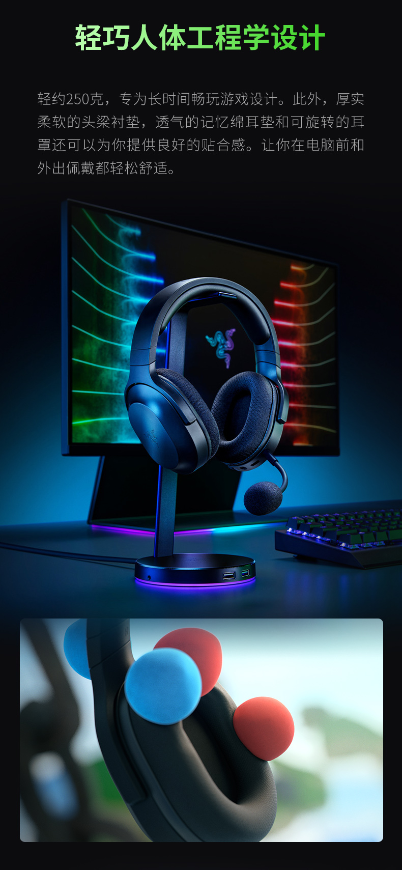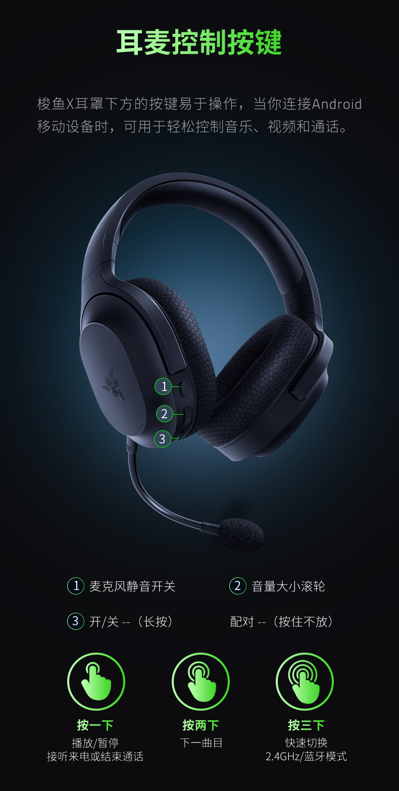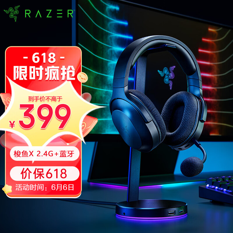 雷蛇 Razer 梭鱼X(2022) 2.4G+蓝牙双无线 多平台兼容 游戏耳麦 降噪麦克风 人体工学设计 电竞游戏耳机 自营